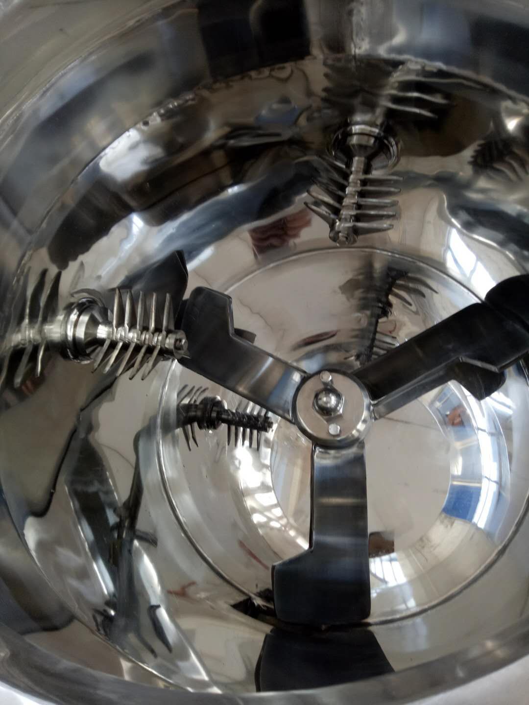 提高了混合速度。側(cè)面安裝了切割裝置,轉(zhuǎn)速每分鐘可達一千四百多轉(zhuǎn),能夠有效切割結(jié)塊物料,使物料混合更均勻。